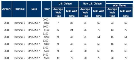 芝加哥機(jī)場入關(guān)時(shí)間: